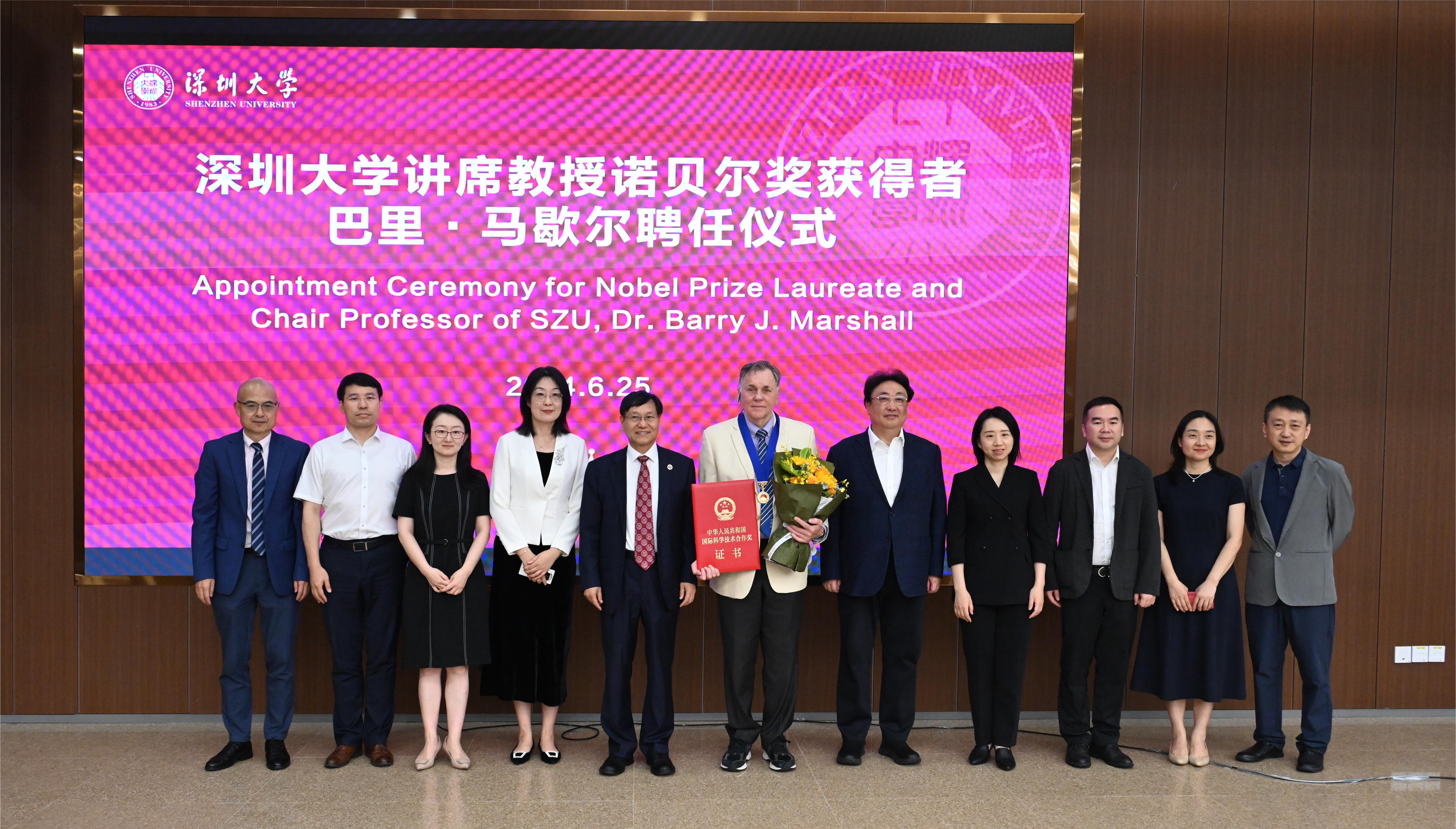 諾獎獲得者巴里·馬歇爾教授受聘深圳大學(xué)講席教授