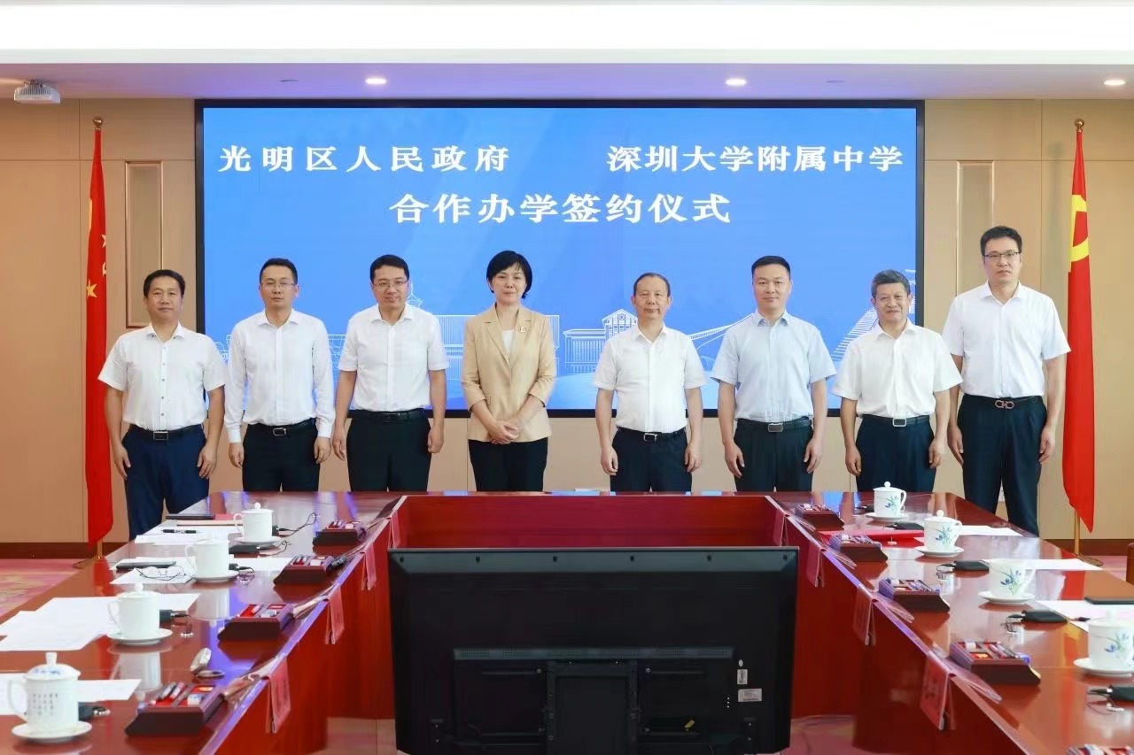 7月8日,深大附中與光明區政府舉行合作辦學簽約儀式。深圳大學校長、中國科學院院士毛軍發,光明區委書記蔡穎,深圳大學黨委副書記吳報水,光明區領導李興亮、王崇峰等出席簽約儀式。7月15日,龍崗區政府與深圳大學基礎教育戰略合作協議簽約儀式在龍崗區舉行。深圳大學黨委副書記吳報水,龍崗區委常委、副區長、區委教育工作領導小組組長黃文雅等出席簽約儀式。