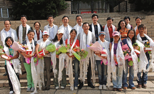 深圳大學2007屆10名西藏學生經過四年的刻苦學習,如今圓滿完成學業順利畢業,即將離開學校,報效家鄉――西藏。7月9日上午,校黨委書記江潭瑜以及黨委統戰部、學生處、文學院、外國語學院等負責人出席了歡送儀式。