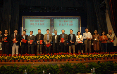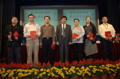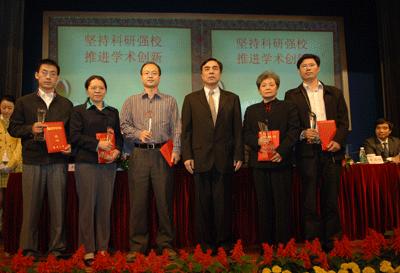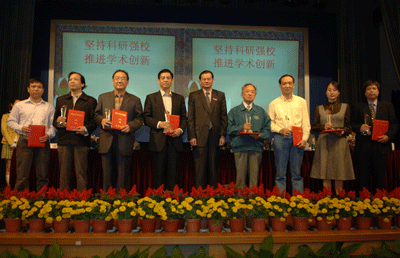 陳思平副校長宣讀了學校關于科學研究獎勵表彰的決定。江潭瑜書記、章必功校長、陶士平副書記、倪嘉纘院士和謝維信主任為獲獎代表頒獎。