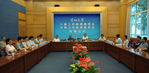 深圳大學計財工作教授委員會和人事工作教授委員會自2006年4月成立以來,歷時兩年工作,取得初步成效。根據(jù)《深圳大學計財工作教授委員會規(guī)程》和《深圳大學人事工作教授委員會規(guī)程》,首屆教授委員會任期屆滿,進行換屆。
