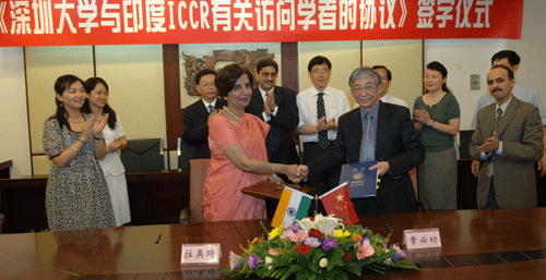 6月18日下午,印度駐華大使拉奧琦女士一行訪問我校,章必功校長、阮雙琛副校長在辦公樓205會晤了拉奧琦女士一行,雙方簽署了《深圳大學與印度ICCR有關訪問學者的協議》。