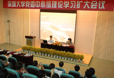 7月2日下午,深圳大學黨委中心組理論學習擴大會議在科技樓三號報告廳召開,中國社科院張永攀博士作題為《香巴拉的迷途――達賴喇嘛的流亡生涯與“西藏問題”的由來》的講座。校領導江潭瑜、陶一桃、李永華,校黨委委員,各基層黨委(總支)書記、副書記,黨政機關、直屬教研、教輔單位以及各學院負責人,各學院黨務秘書、輔導員辦公室全體成員出席會議。校黨委副書記陶一桃主持會議。
