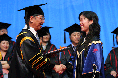典禮暨授予儀式在雄壯的國歌聲中開始。陶一桃、陳思平、李永華分別宣讀學校授予各學院全日制本科生學士學位的決定。校長章必功為獲得學士學位的同學一一頒發證書并合影留念。