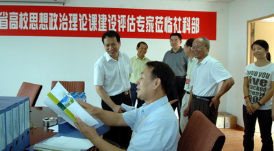 評估組專家們首先來到社科部“德育情景教學模擬實驗室”,觀摩了我校所開發的Flash教學軟件并親自參與了軟件的操作。評估組還認真審核了我校提交的思想政治理論課建設材、教學原始資料,仔細了解了我校思想政治理論課建設情況的情況,就我校的學科建設、學科優勢、科研成果等方面的情況與社科部的教師進行了交流,并充分肯定了我校思想政治理論課建設的快速發展和近年來所取得的科研成果。