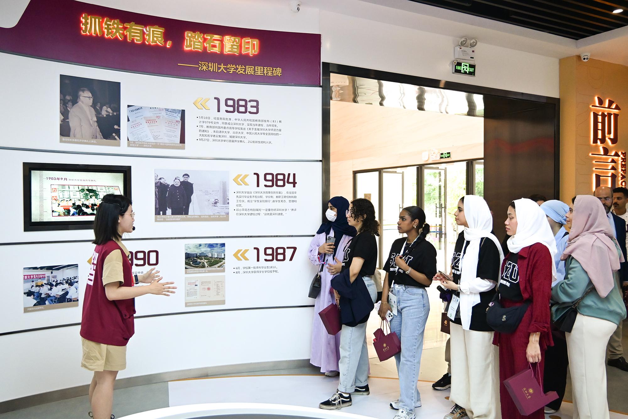 歡迎儀式最后,兩位沙特青年學(xué)生代表介紹了沙特蘇爾坦親王大學(xué)的概況,表達(dá)了對“漢語橋”春令營活動的期待和對未來的憧憬。儀式結(jié)束后,沙特青年學(xué)生一行參觀深圳大學(xué)校史館,并與深圳大學(xué)師生進(jìn)行文化交流活動。