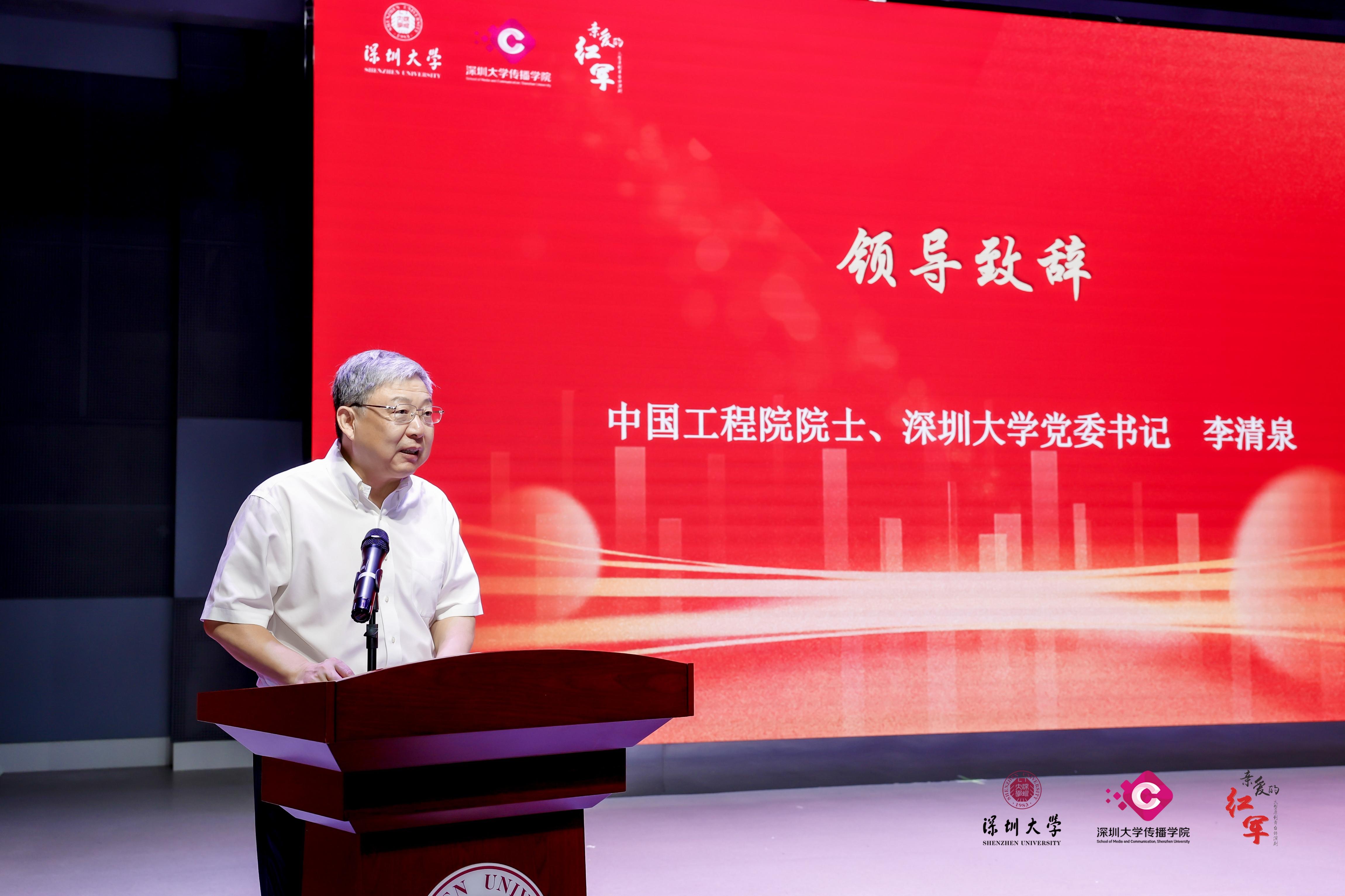 2024年6月22日,新時(shí)代新聞傳播思政育人創(chuàng)新與實(shí)踐論壇暨深圳大學(xué)《親愛(ài)的紅軍》五周年研討會(huì)在深圳大學(xué)傳播學(xué)院舉辦。深圳大學(xué)黨委書記、中國(guó)工程院院士李清泉,深圳市委宣傳部副部長(zhǎng)、市新聞出版局局長(zhǎng)、市政府新聞辦主任蘇榮才,《親愛(ài)的紅軍》特聘專家顧問(wèn)、國(guó)家一級(jí)導(dǎo)演、著名演員、深圳大學(xué)校友總會(huì)常務(wù)理事歐陽(yáng)奮強(qiáng),深圳大學(xué)黨委組織統(tǒng)戰(zhàn)部、黨委宣傳部、黨委學(xué)生工作部、團(tuán)委、傳播學(xué)院相關(guān)負(fù)責(zé)人出席會(huì)議。