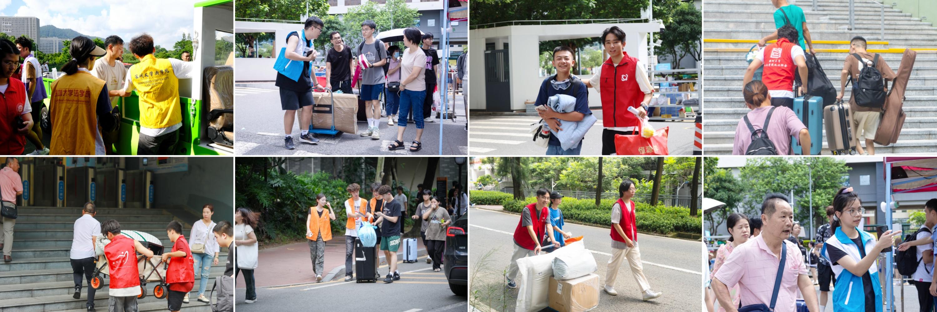 學校設置了義工點,身穿紅馬甲的志愿者和藍馬甲的“青馬新生營”成員駐點服務新生,校領導看望慰問迎新志愿者和工作人員。建筑與城市規劃學院的李嬋媛和人文學院的胡琴都是志愿者聯合會的成員,她們早早報名,期待成為志愿者,為新生提供服務。“我們去年來深大報到的時候,許多學姐學長、工作人員都幫忙指路引導、運送行李,帶我們熟悉校園,讓我們感受到了學校的溫暖。今年我們也想把這份溫暖傳遞下去,為新生提供力所能及的幫助,讓學弟學妹們更快地融入荔園生活。”