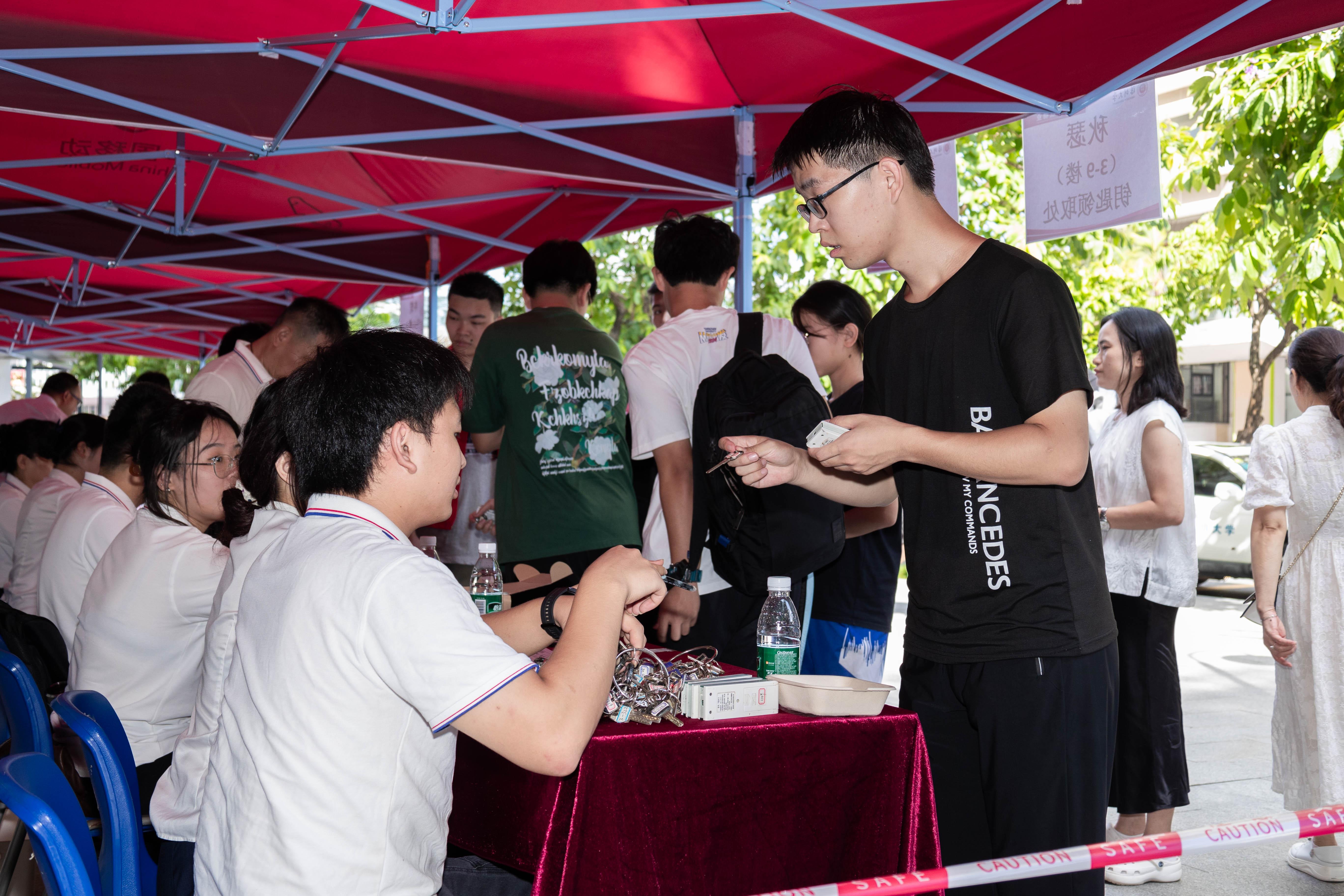 “萌新”報到,志愿者與工作人員駐點服務新生