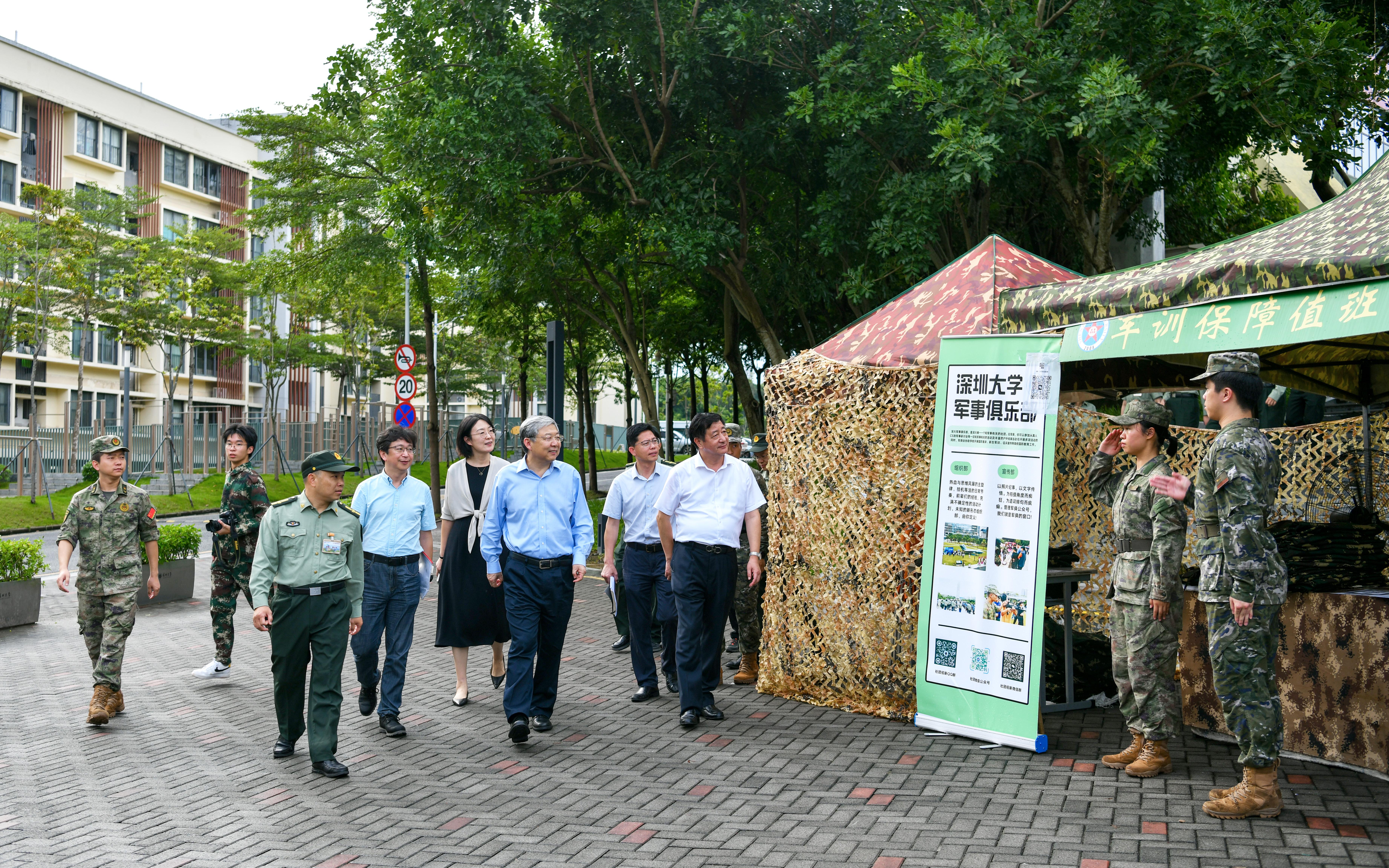 9月25-26日,深圳大學黨委書記李清泉,校長毛軍發,副校長李永華、汪永成等校領導先后到粵海、麗湖兩校區看望慰問2024級軍訓新生。學校黨政辦公室、黨委組織統戰部、黨委宣傳部、學生部、武裝部、麗湖校區管理辦公室等職能部門相關負責人以及軍訓一團、二團、三團政委陪同看望。